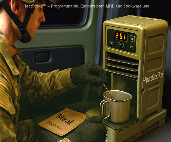 HeatStrike™ Military-Grade Induction Heating System Field-Ready, Precision, Rapid Heating Built for the battlefield, HeatStrike™ is a rugged induction-based heating system that delivers rapid, energy-efficient meal readiness for any mission. Whether activated on-demand or via scheduled cycles, it ensures