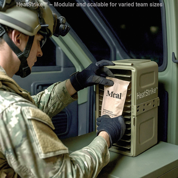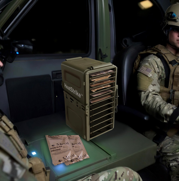 Built for the battlefield, HeatStrike™ is a rugged induction-based heating system that delivers rapid, energy-efficient meal readiness for any mission. Whether activated on-demand or via scheduled cycles, it ensures Meals, Ready-to-Eat (MREs) are hot and ready—on your timeline.